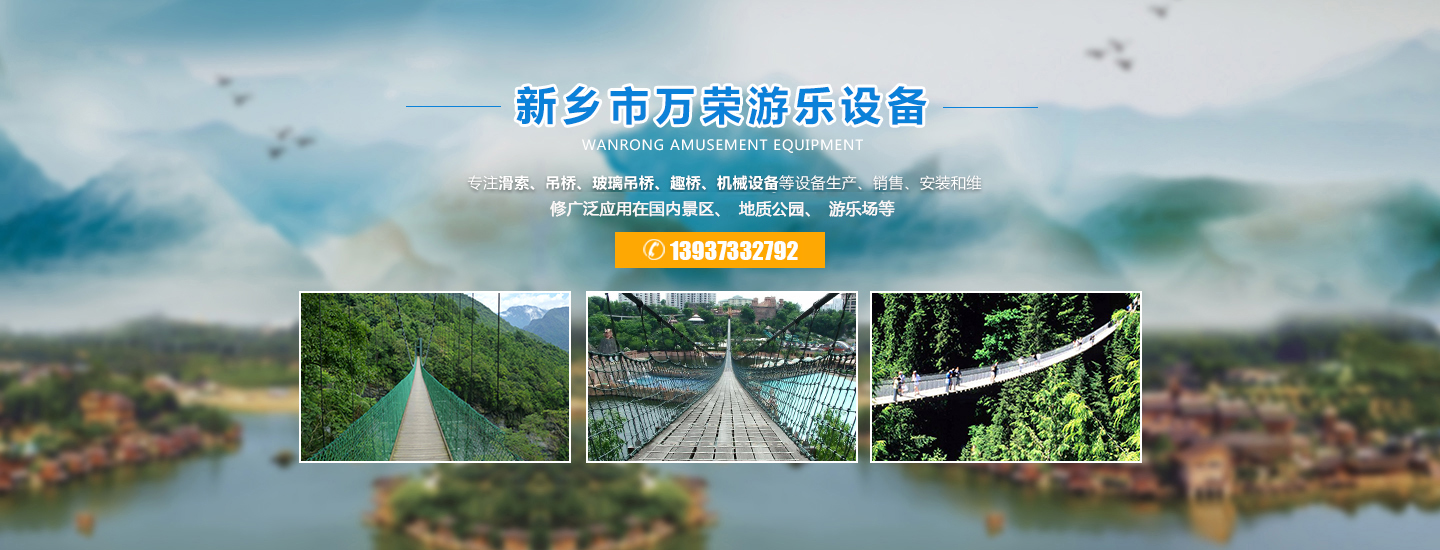 歡迎進入新鄉(xiāng)市萬榮機械有限公司官網(wǎng)!關(guān)鍵詞:玻璃水滑廠家,吊橋廠家, 景區(qū)吊橋價格, 滑索廠家, 游樂吊橋廠家, 玻璃吊橋, 防腐木吊橋廠商 ,景區(qū)吊橋, 滑索設(shè)備, 吊橋生產(chǎn)廠家, 吊橋多少錢, 木板吊橋, 吊橋施工廠家